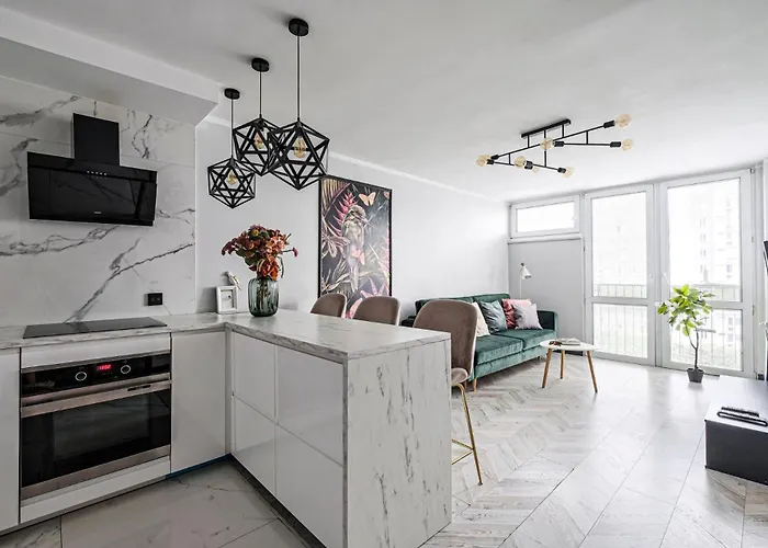Das 45 m² große Apartment Grzybowska Luxury And Modern-City Center Warschau liegt in einer 17 Gehminuten Entfernung vom Präsidentenpalast und bietet WLAN für Geschäftsreisende und Urlauber. Das Apartment befindet sich im Stadtteil Centrum, in unmittelbarer Nähe von der Sigismundssäule entfernt.